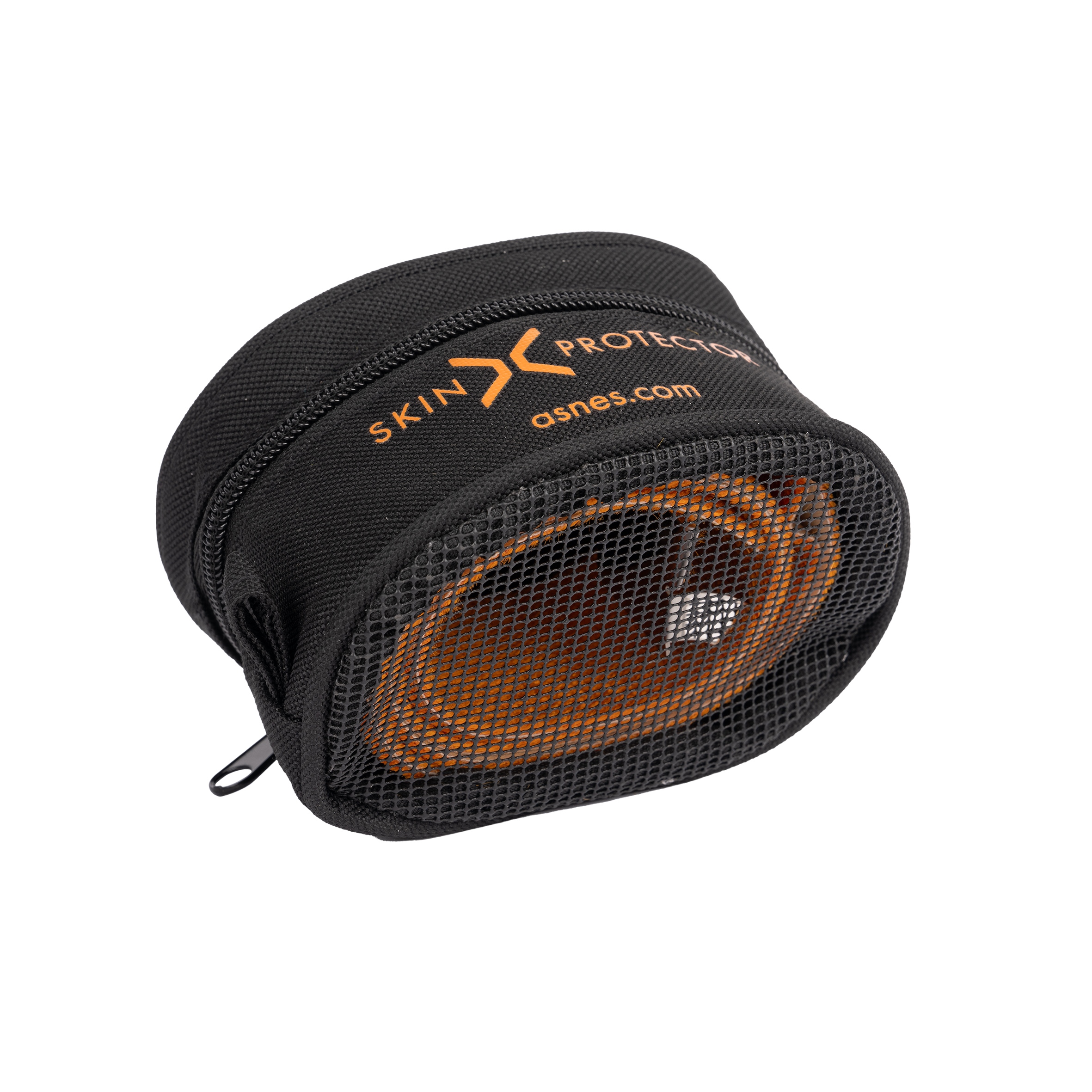 Kortfeller fra Åsnes levers i en praktisk fellebag som kan festes på sekken eller i belte. Baggen har perforert stoff i bunnen, som sikrer at fellene tørker og vannet renner ut av baggen.